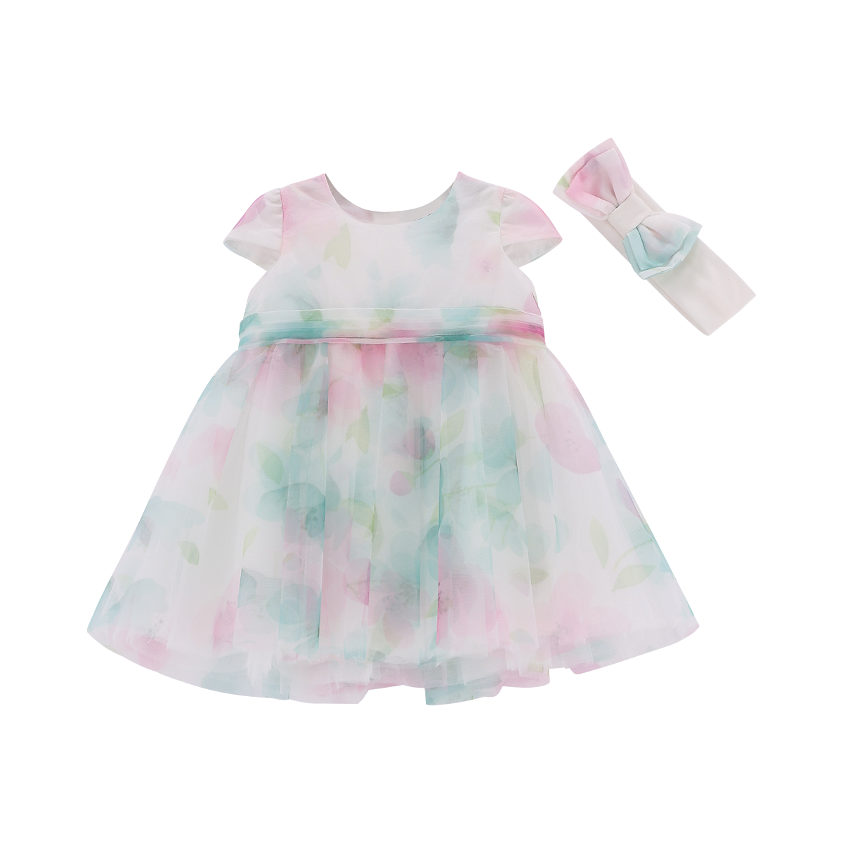 Abito m/c e fascetta tulle neonata